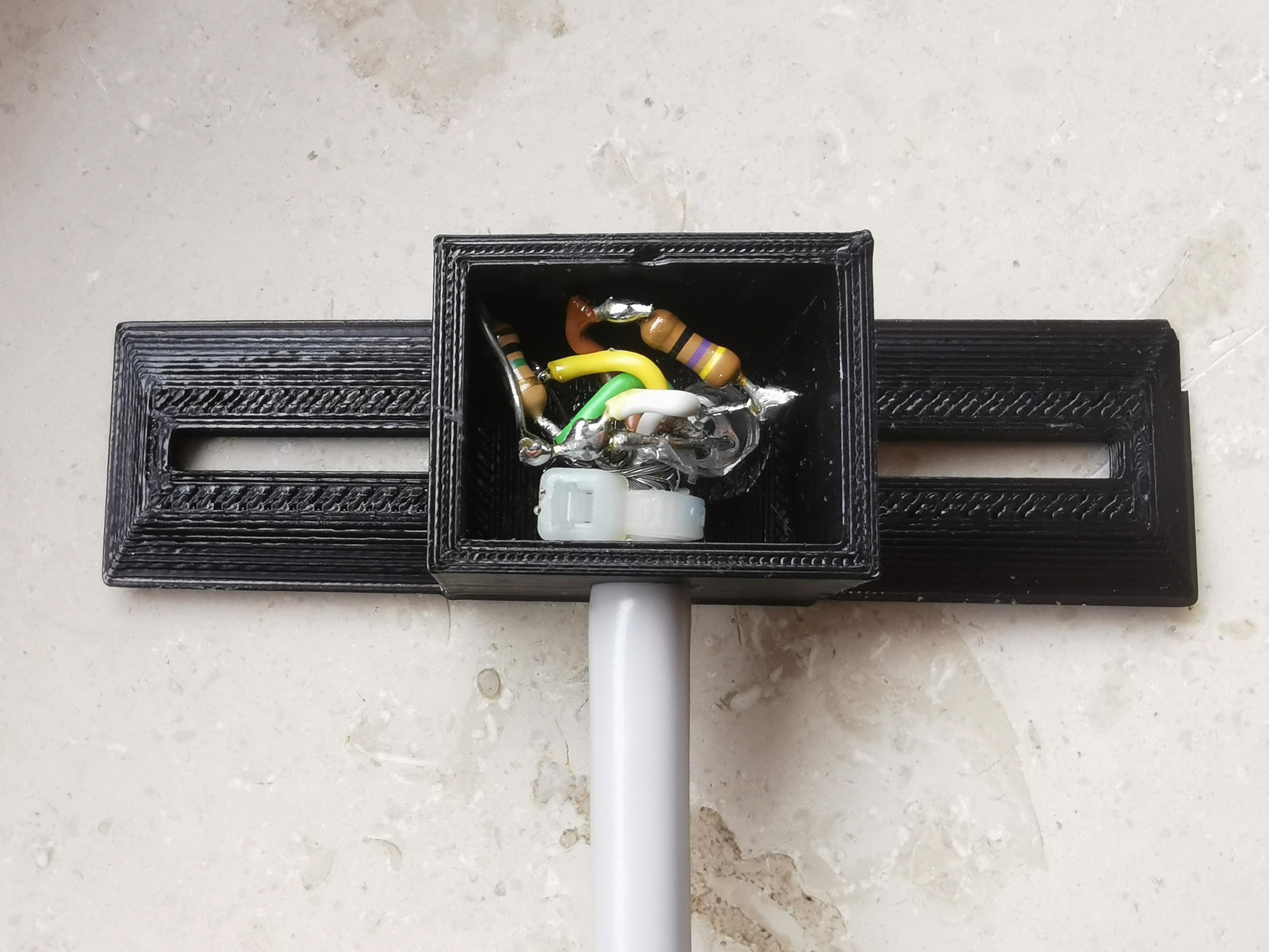 Ansonsten habe ich ein schwarzes, nicht störendes Gehäuse gedruckt. Mit einem Schlitz in der Mitte, damit der Sensor exakt über der Scheibe ausgerichtet werden kann.